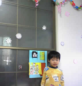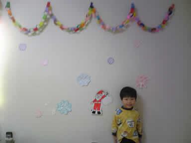 12月22日 コーチンと一緒に折り紙で部屋の飾りつけをしました。
