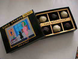 「ブラックもいいですか?」とブラックを一粒。「これは、おいしい!!チョコの苦味と生キャラメルの甘味が