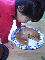ケーキを覗き込んでます。 どうもコーチンは、かぶりつきたかった